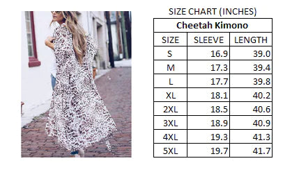 Long and trendy, loose, chiffon open blouse. Wide half length sleeves and a modern open front. Wear it over a tank top and get all the attention. Cheetah print.